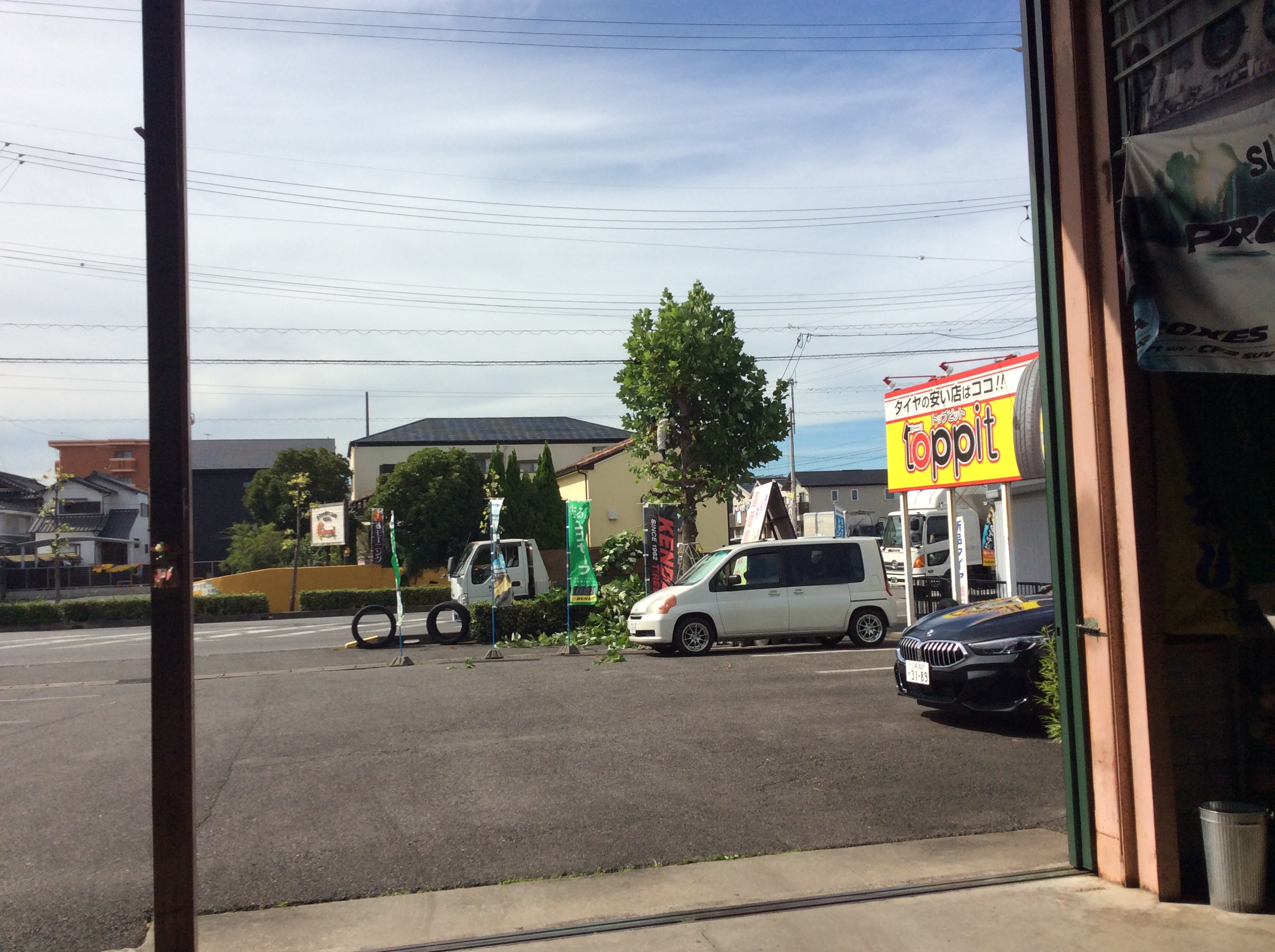 お店の前に立派な街路樹があります。