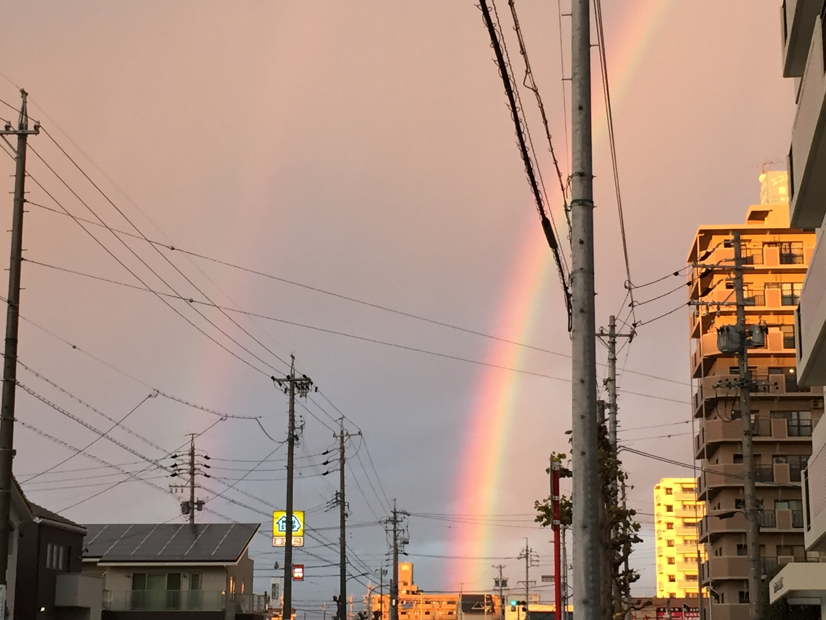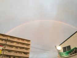 建物の無い平地だったら多分端っこから端っこまでクッキリ見えたんじゃないかな? ってくらいハッキリくっきりした虹